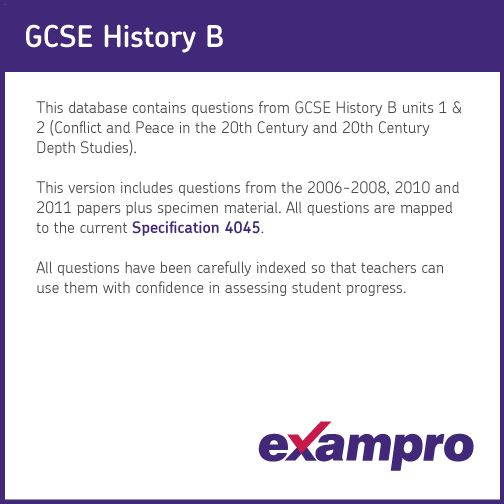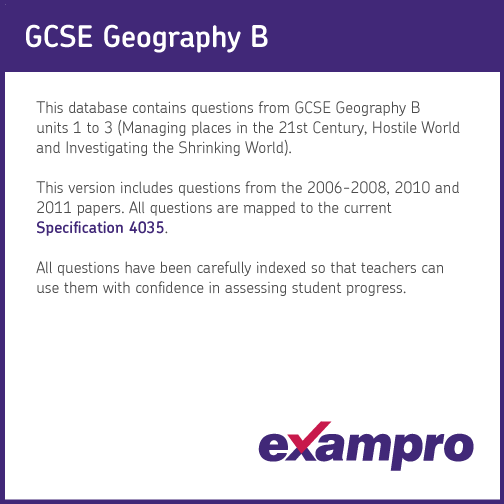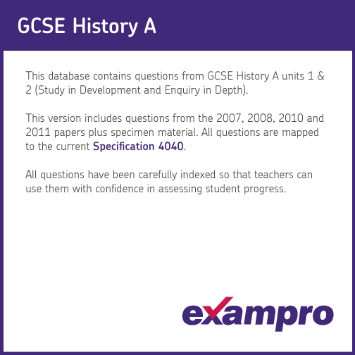 Exampro GCSE Humanities products give you access to hundreds of individual questions, their associated mark schemes, examiner comments and related notes. Every item is derived from specimen and past papers that assess the current specifications.