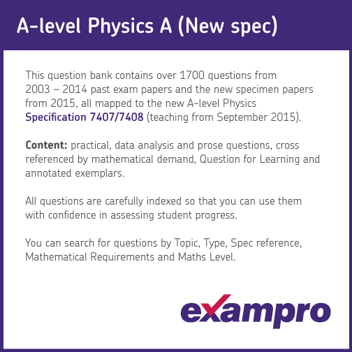 If you are preparing to teach the new A-level Science specifications click here to see our Free Sample Materials and access A-level Biology, Chemistry and Physics questions mapped to the new specifications.